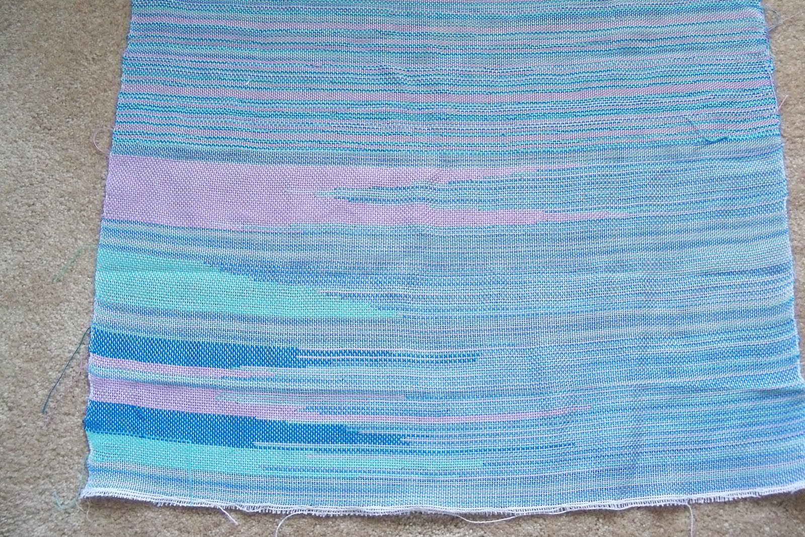 I'm going to try to make a top out of this piece, and another piece I did in the middle of the long strip of fabric. I had done this piece first, cut it off the loom, corrected the threading because I wasn't sure what else I was going to do with the warp, and wanted at least the warp to be correct.